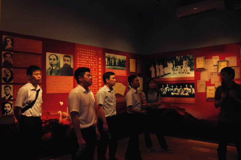 ?? 團(tuán)一大紀(jì)念廣場上,約50名團(tuán)員青年代表佩戴團(tuán)徽,莊嚴(yán)地舉起右手,重溫入團(tuán)誓詞。團(tuán)一大史跡展覽館中,大家通過“歷史的選擇”、“東園起春潮”、“偉業(yè)的召喚”和“青運(yùn)開新篇”四個(gè)篇章,回顧共青團(tuán)的光輝歷程,緬懷革命先輩的偉大業(yè)績。